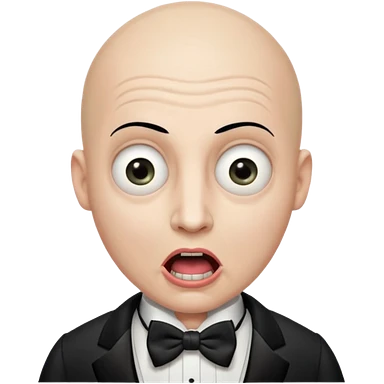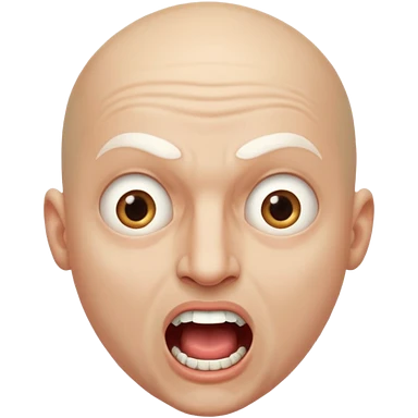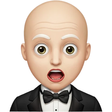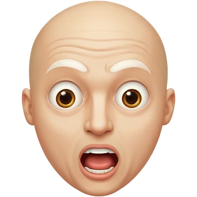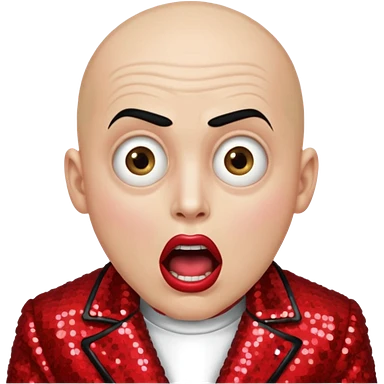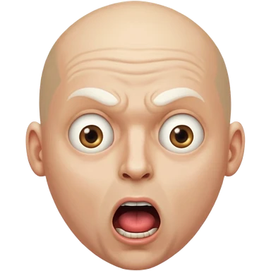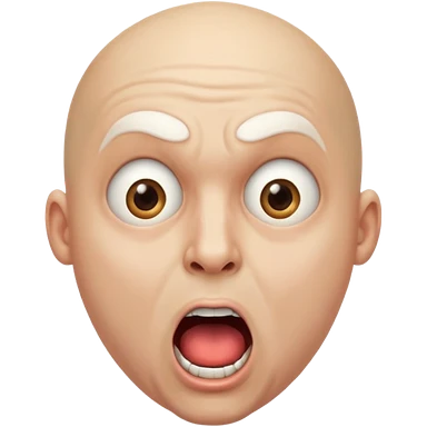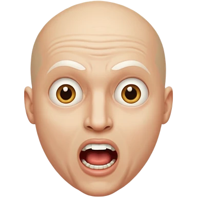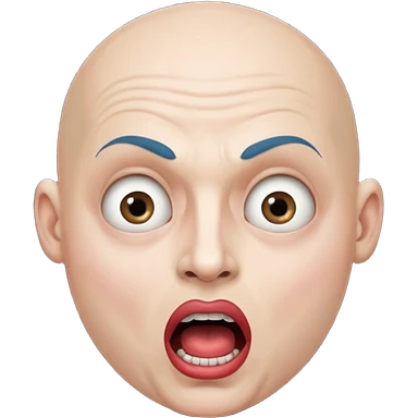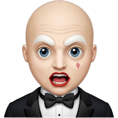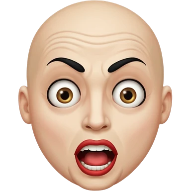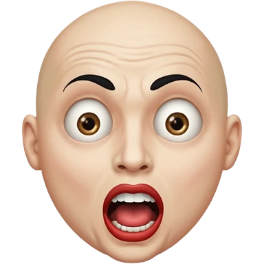 portrait of a bald man with a bleached face and heavily made-up eyes and mouth, a huge, wide-open mouth and a shocked look emoji