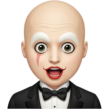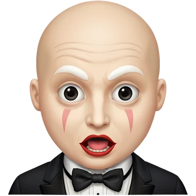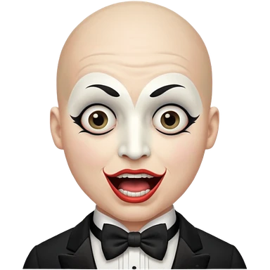 Cabaret portrait of a bald man with a whitened face and made-up eyes and mouth, a huge, wide-open mouth and a startled look emoji