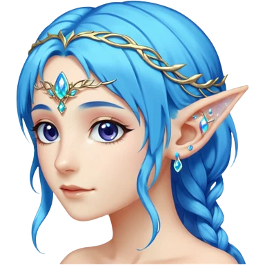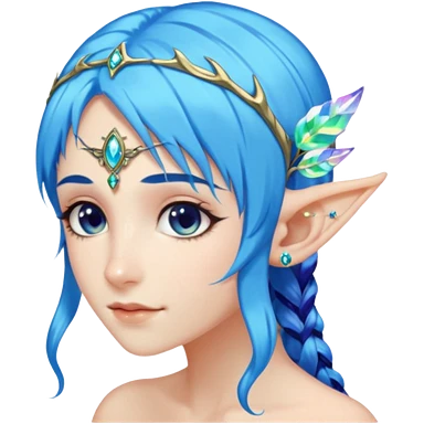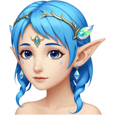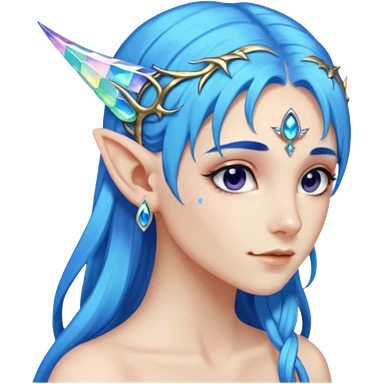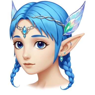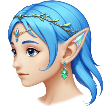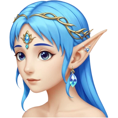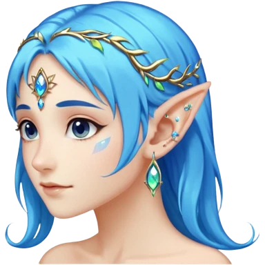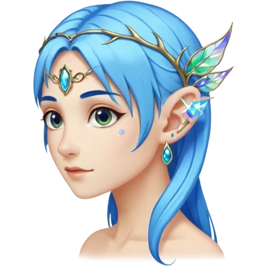 portrait of blue haired Elvish fae shiny sparkly iridescent translucent diaphanous ear climber ear cuff emoji