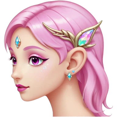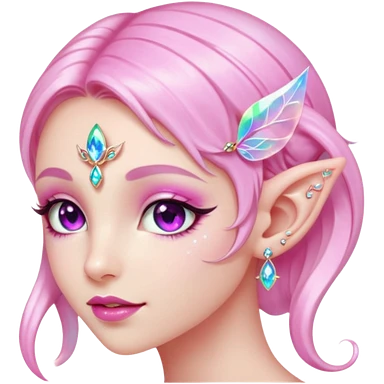 portrait of pink Elvish fae shiny sparkly iridescent translucent diaphanous ear climber ear cuff emoji
