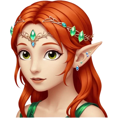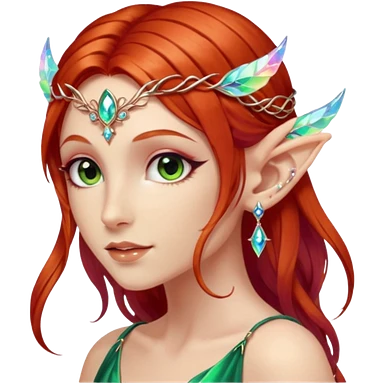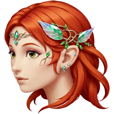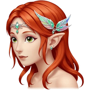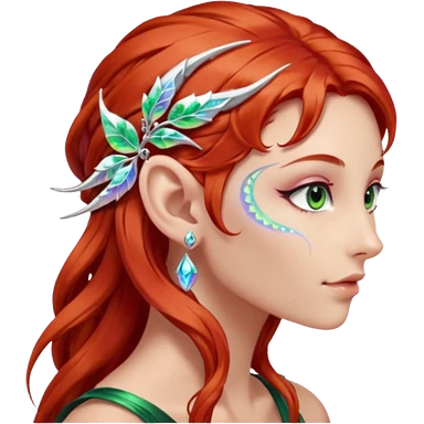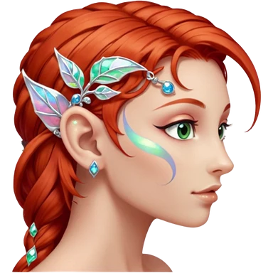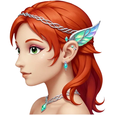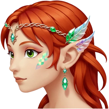 portrait of red haired Elvish fae shiny sparkly iridescent translucent diaphanous ear climber ear cuff emoji