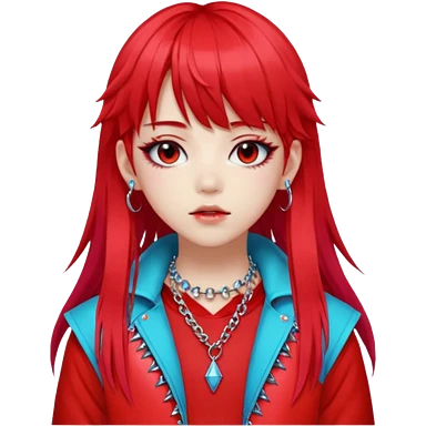 portrait-of-young-ghost-idol-in-kpop-style,-wearing-flashy-streetwear-outfit,-colorful-dyed-hair,-confident-pose,-accessorized-with-chains- emoji | AI Emoji Generator