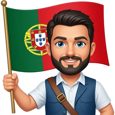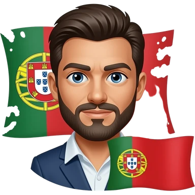 Emoji of a handsome Portuguese man of 35 years with a beard and a bright smile. emoji