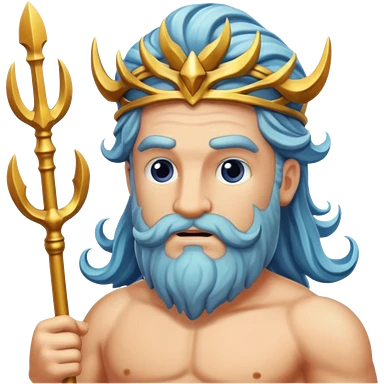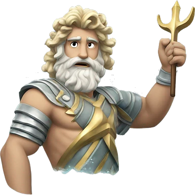 Poseidon with Trident. white dress. smile . eye blink emoji