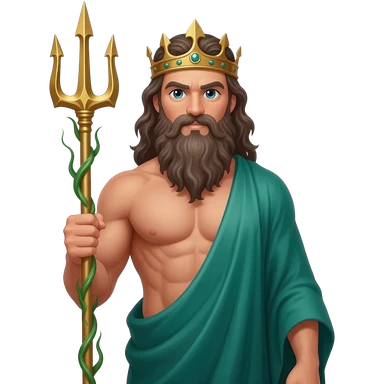 Poseidon from Greek Gods with long blue wavy hair and short beard, sea green sequin toga emoji