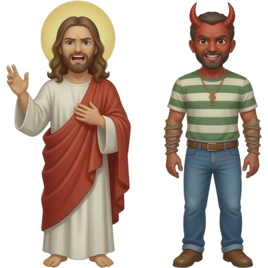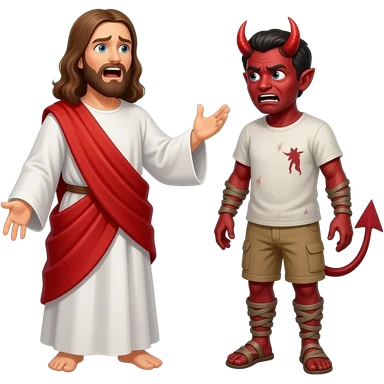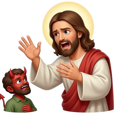 Jesus yelling at a scared demon to leave a man that is demonically possessed emoji