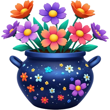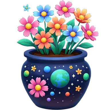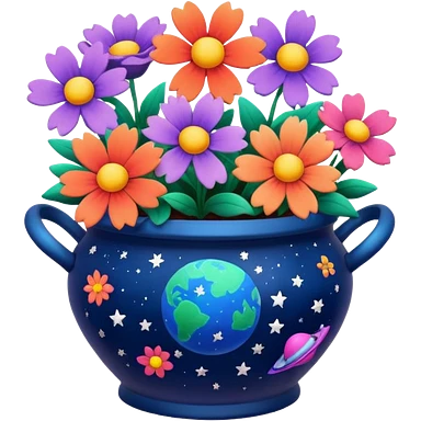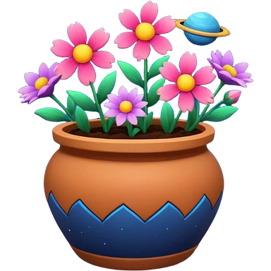 Space-Painted Clay Pot of Space-Petalled Flowers, emoji