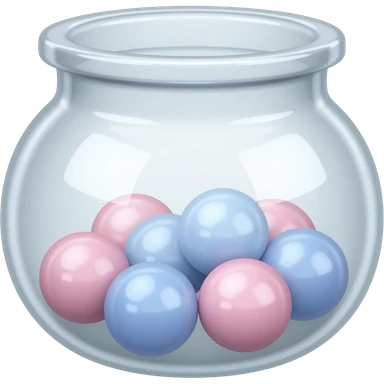 Pot transparent avec plusieurs billes bleu et rose pastel emoji