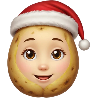 Potato with a happy girl face and a Santa Christmas hat on emoji | AI Emoji Generator