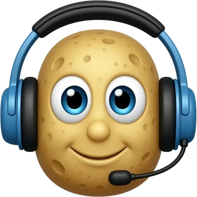 Potato with eyes and mouth wearing blue and black headphone emoji