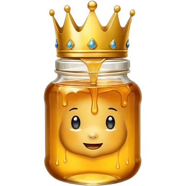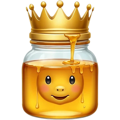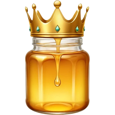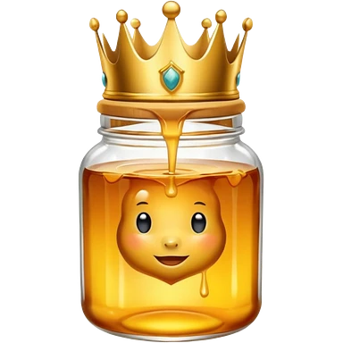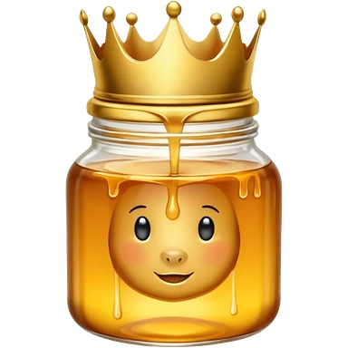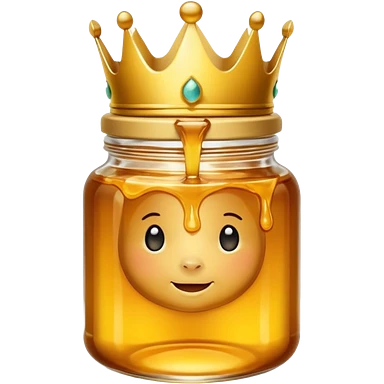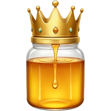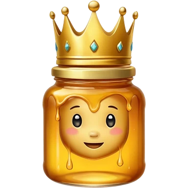 Honey jar filled with golden thick liquid, on top of the jar a big crown emoji