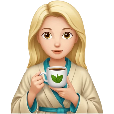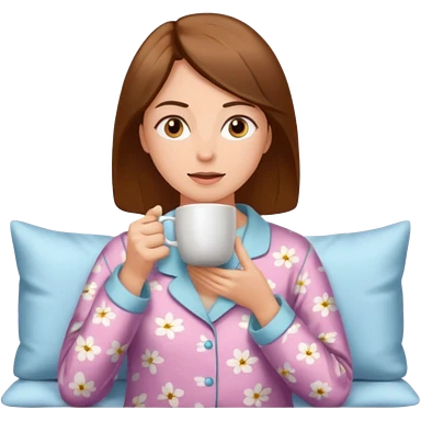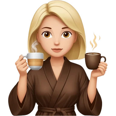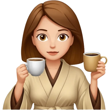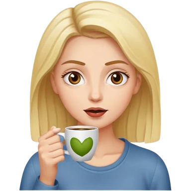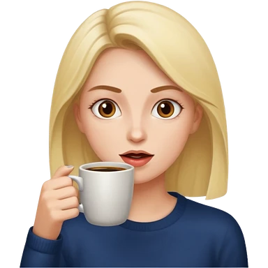 Woman drinking coffee and The edges of the eyes are wide open in the morning emoji