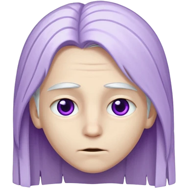 Bembeyaz teni olan, bembeyaz uzun ve düz saçları olan,mor gözlü,gözü çekik, genç bir oğlan tasarlar mısın emoji