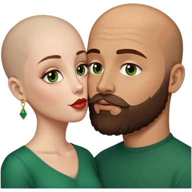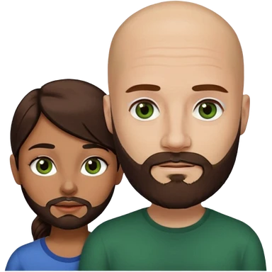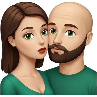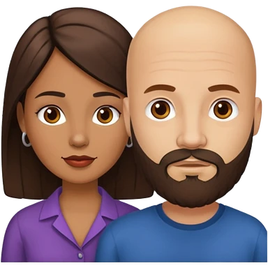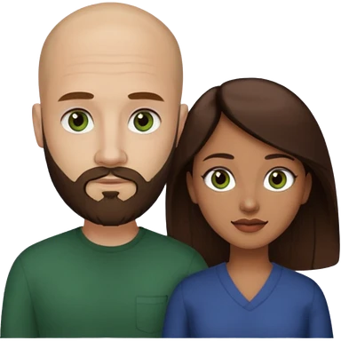 Man beard bald white dark green eyes, woman medium hair brown brown eyes latina emoji