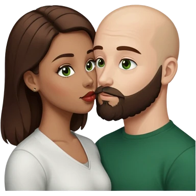 Man beard bald white dark green eyes, woman medium hair brown brown eyed latina emoji