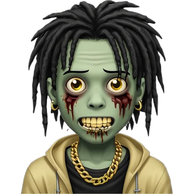 zombie emo black boy emoji with black dreads and gold grillz emoji