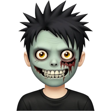 emo zombie boy with spiky black emo hair and a black shirt and grilzz emoji