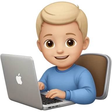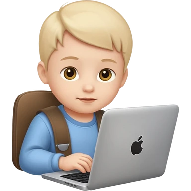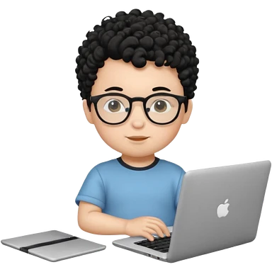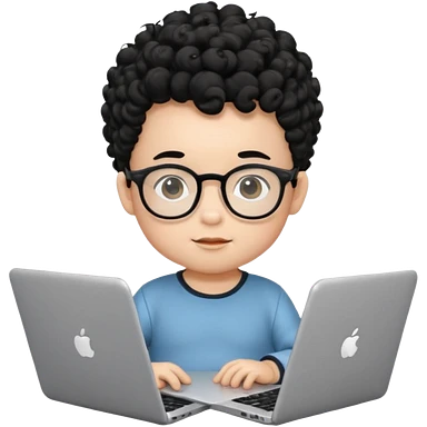 A baby boy DEVELOPER WITH A laptop, black curly hair and topknot, wearing glasses emoji
