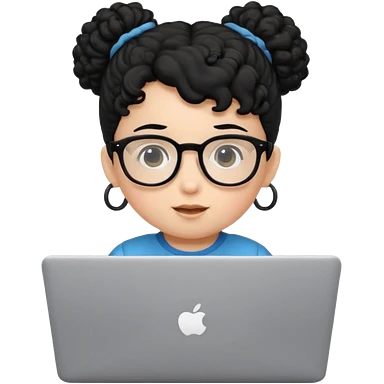 A baby DEVELOPER WITH A laptop, black curly hair and topknot, wearing glasses emoji