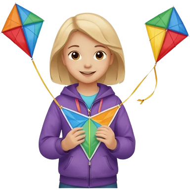 little girl kid holding kite in front of her chest emoji