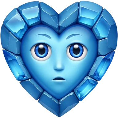 very sharp very broken broken blue gem mineral , multiple irregular chunks, very shiny with two eyes and heart shaped thousand edges emoji