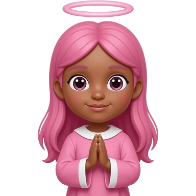 praying girl with pink robe pink halo pink hair and brown skin emoji