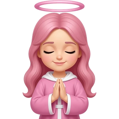 praying girl with pink robe pink halo pink hair and light skin emoji