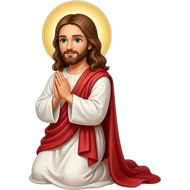 Jesus with a halo praying on his knees to God emoji