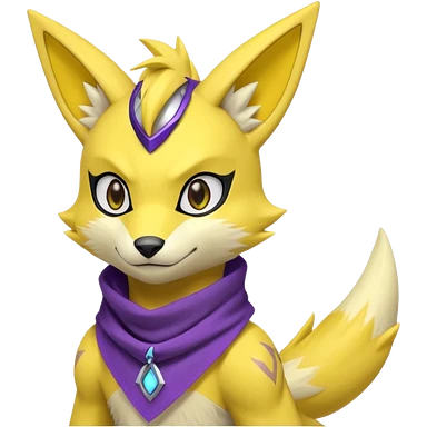 Furry Anthropomorphic Yellow Renamon-Lombard-Zeraora-Toxtricity-Pokémon-Digimon-Fakémon-fusion with purple lightning-bolt-markings, and facial markings, black bandanna scarf emoji