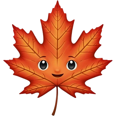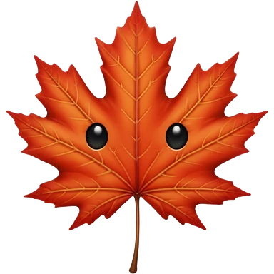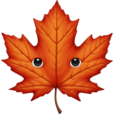 emoji, feuille d'érable couleur vermeille, deux yeux ronds noirs brillants emoji