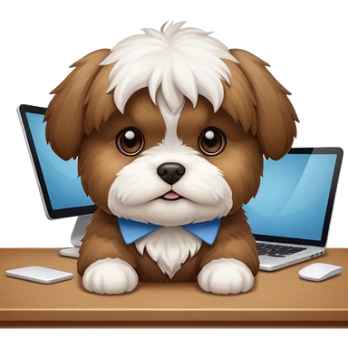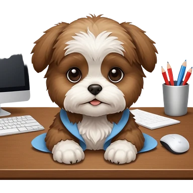 preciso de um cachorrinho da raça shitzu em cima de uma mesa de escritório emoji | AI Emoji Generator