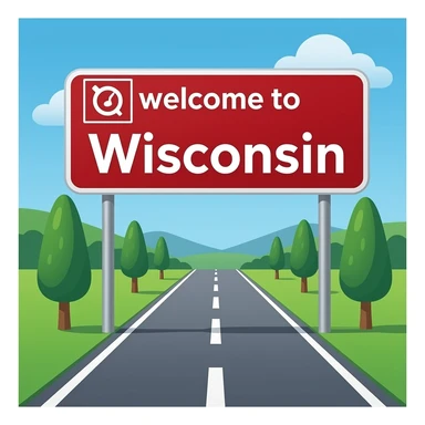 perfect don’t change the road but make the red sign a rectangular sign that says “welcome to Wisconsin” with any drawings emoji
