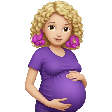 pregnant woman, blond curly hair, purple shirt, head, neck and abdomen only emoji