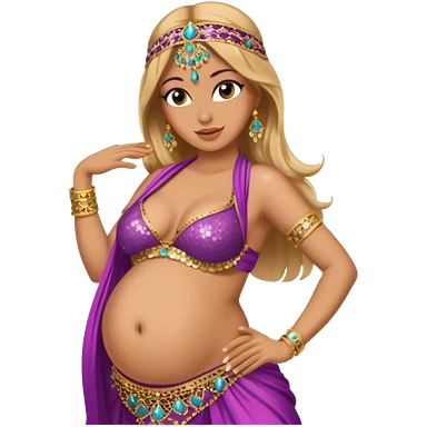 pregnant woman with purple shirt. Blond hair, light skin, pony tail. Only show abdomen neck and head. emoji