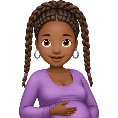 pregnant black woman with dread lock hair happily touching her big belly while wearing casual shirt and yellow warm flowery cardigan closing her eyes and smile wamrly emoji
