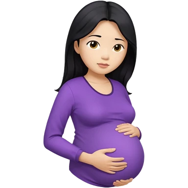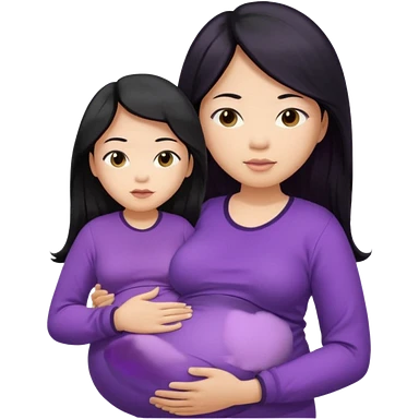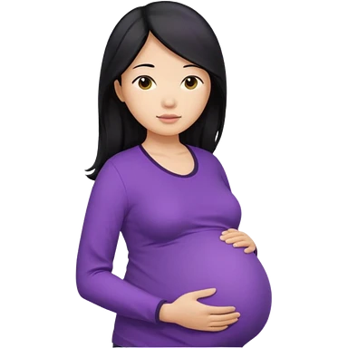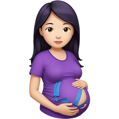 Asian, pregnant woman, purple shirt, long hair, head and eck and abdomen only emoji