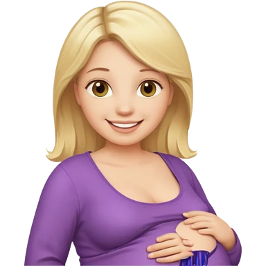 blonde pregnant woman holding iPhone emoji