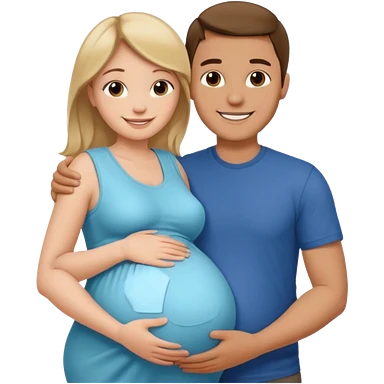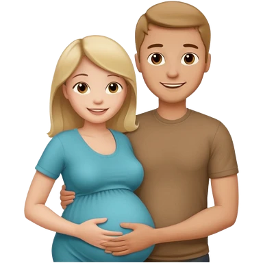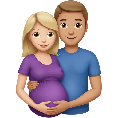 pregnant woman with her man next her with his arm around her emoji
