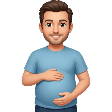 pregnant man with black beard and hai in a blue shirt, side view emoji
