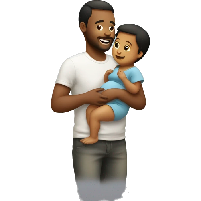 Pregnant man holding his toddler on his arms while his toddler plays with dads pregnant belly emoji | AI Emoji Generator