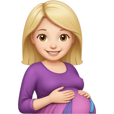 pregnant woman, blond curly hair, purple shirt, head, neck and abdomen only emoji