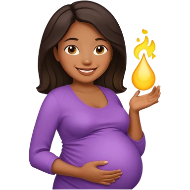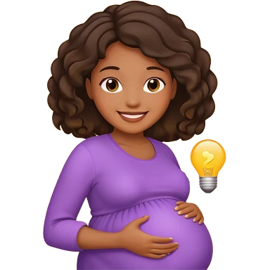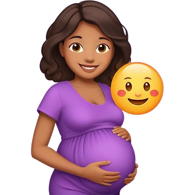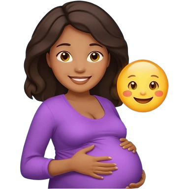 pregnant woman with wavy black hair happily touching her big belly while wearing warm clothes and a thin coat slightly drop of her shoulder emoji