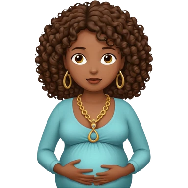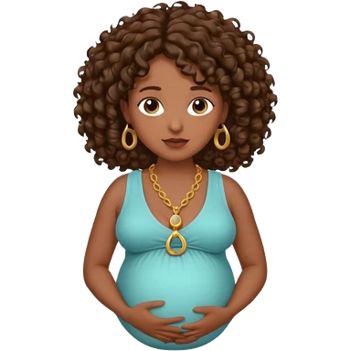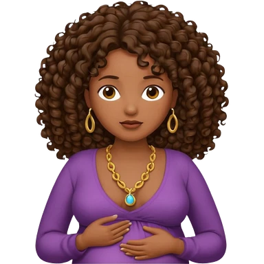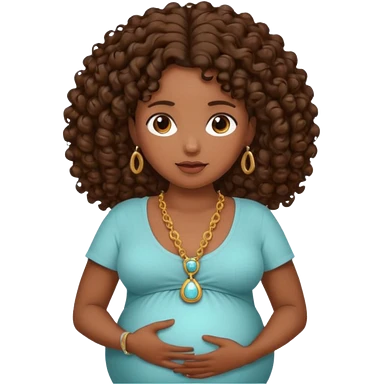 Very dark brown skin woman, pregnant with curly brown hair, head neck and abdomen only emoji