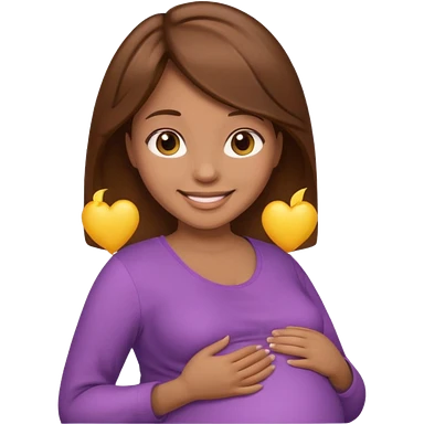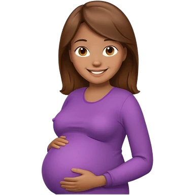 A pregnant woman with long brown hair and fair skin smiling emoji