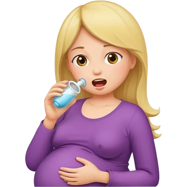 pregnant women with purple shirt, short white hair, head, neck and upper abdomen emoji