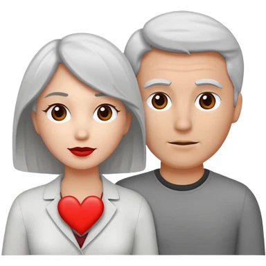 bonjour, peux-tu générer un émoji d'un couple hétérosexuel, composé d'une femme blanche ayant les cheveux gris clair, accolée à un homme blanc avec les cheveux brun, le tout avec un cœur entre les 2 pour les lier merci emoji