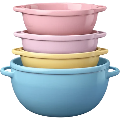 Stack of three mixing bowls, pastel yellow, pastel pink and pastel blue emoji