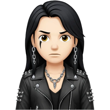 A fan of heavy extreme music, a metalhead with long black hair, rivets in chains on a leather jacket emoji