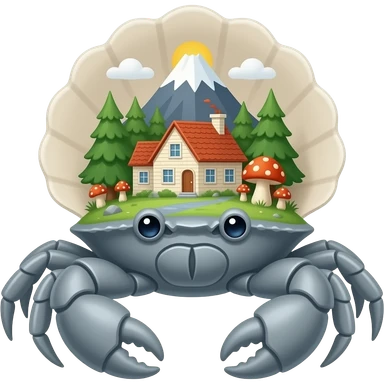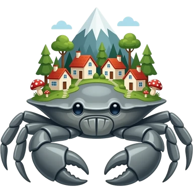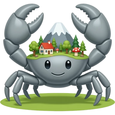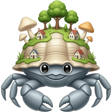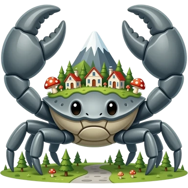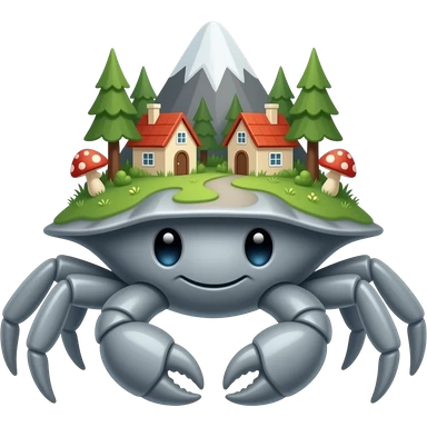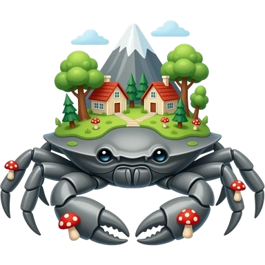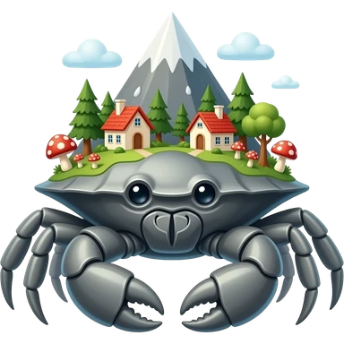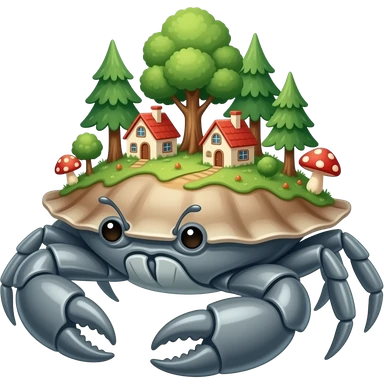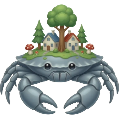 A purple crab with a purple flower growing on its back on its back purplen eyes glowing eyes facing forward emoji