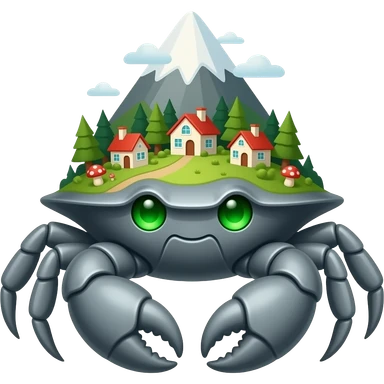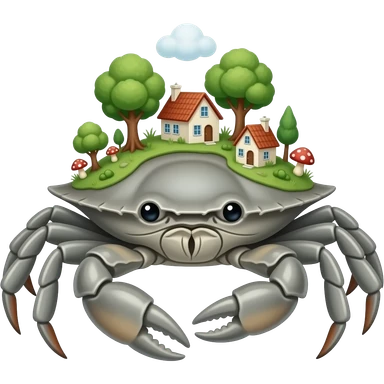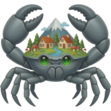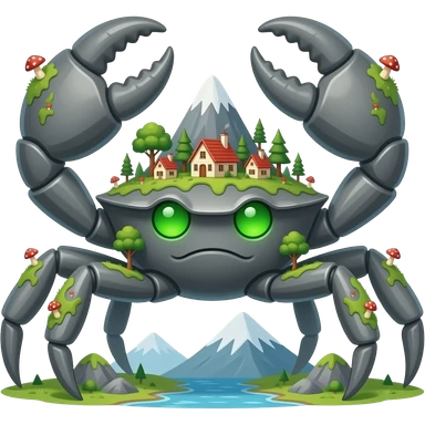 A green crab with a green flower growing on its back on its back green eyes glowing eyes facing forward emoji